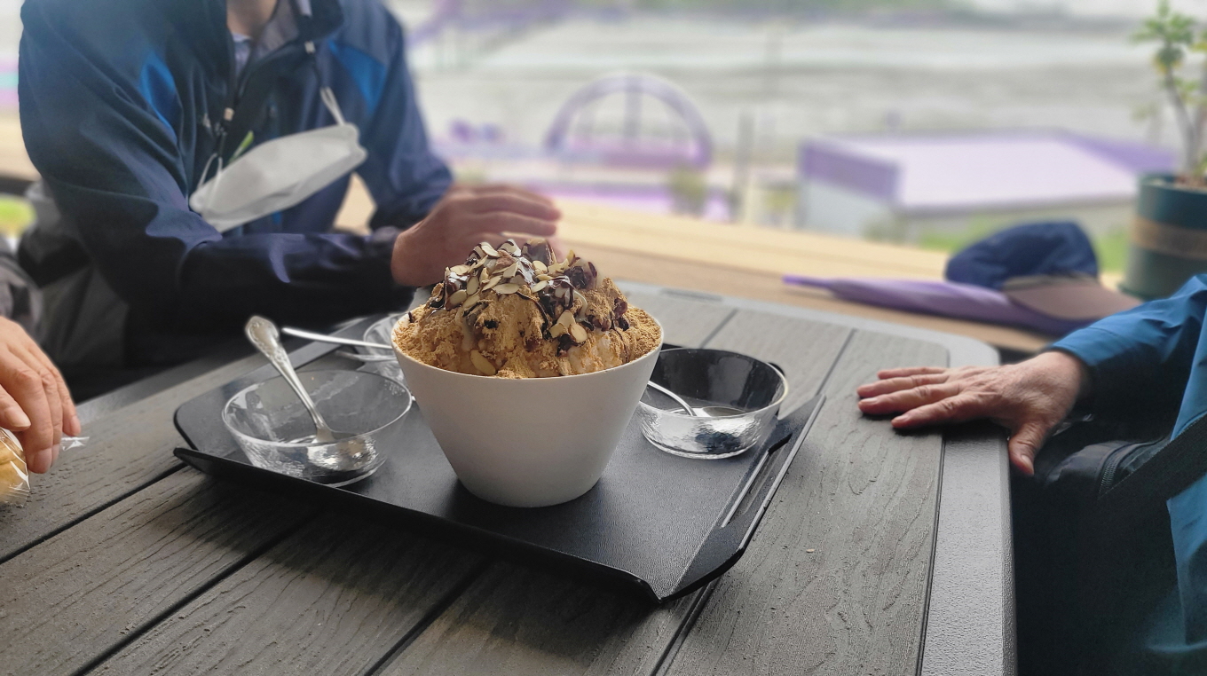 (꽃이 안 폈데요..) 그냥 우린 퍼플교만 한 바퀴 돌고선 OO카페에서 먹어도 먹어도 줄어들지 않는 가득 퍼담아 주던 팥빙수를