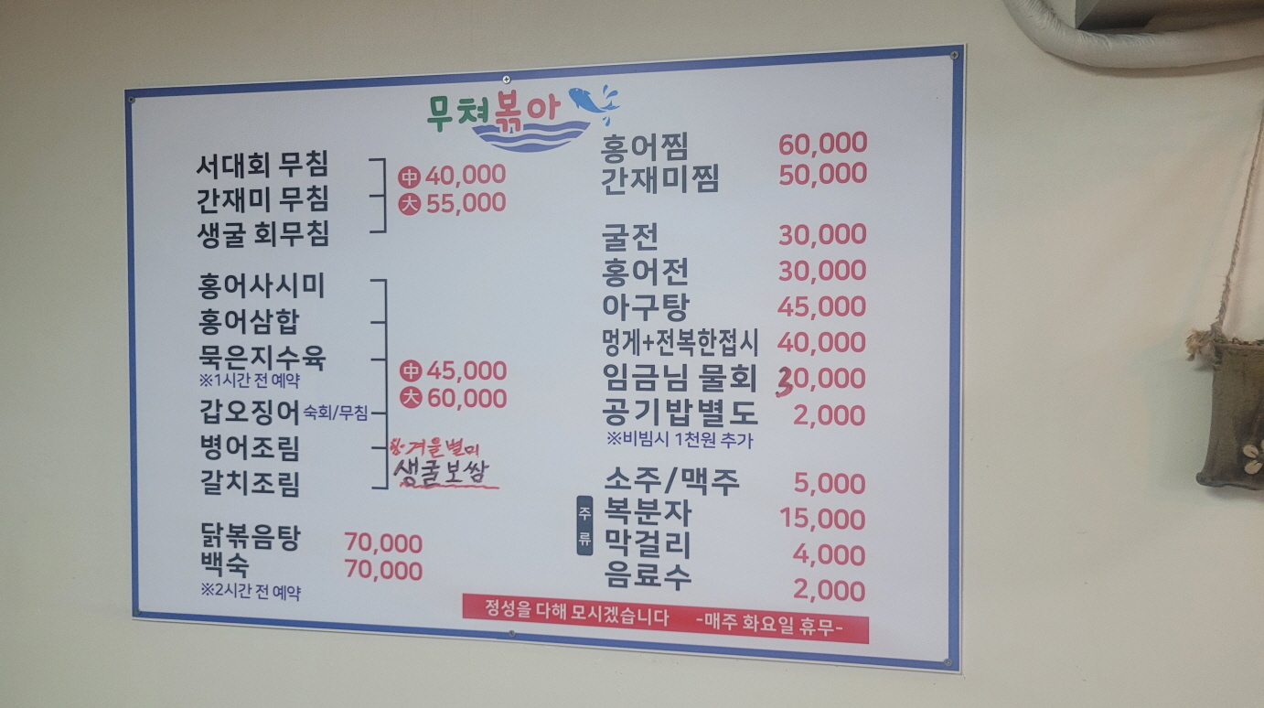 " 쳐 볶아 사장님~ 오늘 일요일인데도 영업하세요? 혹시 홍어도 파시고요? 6명 식사될까요?"