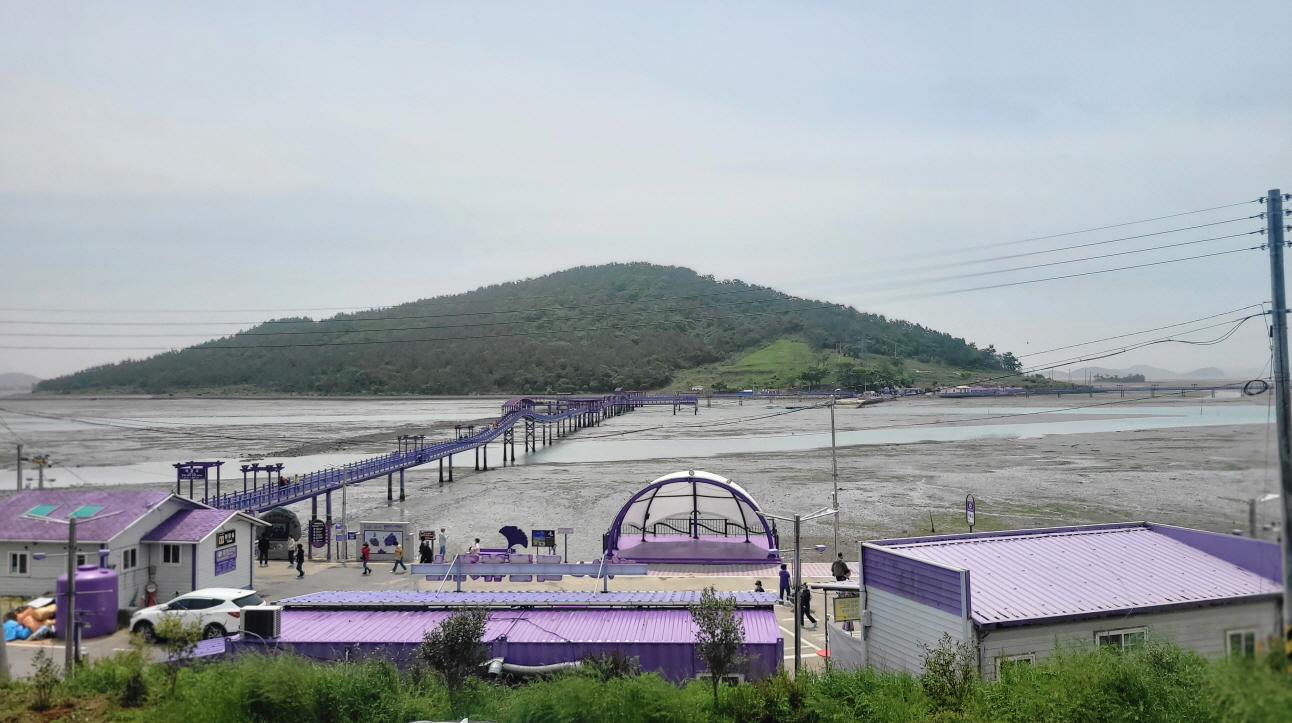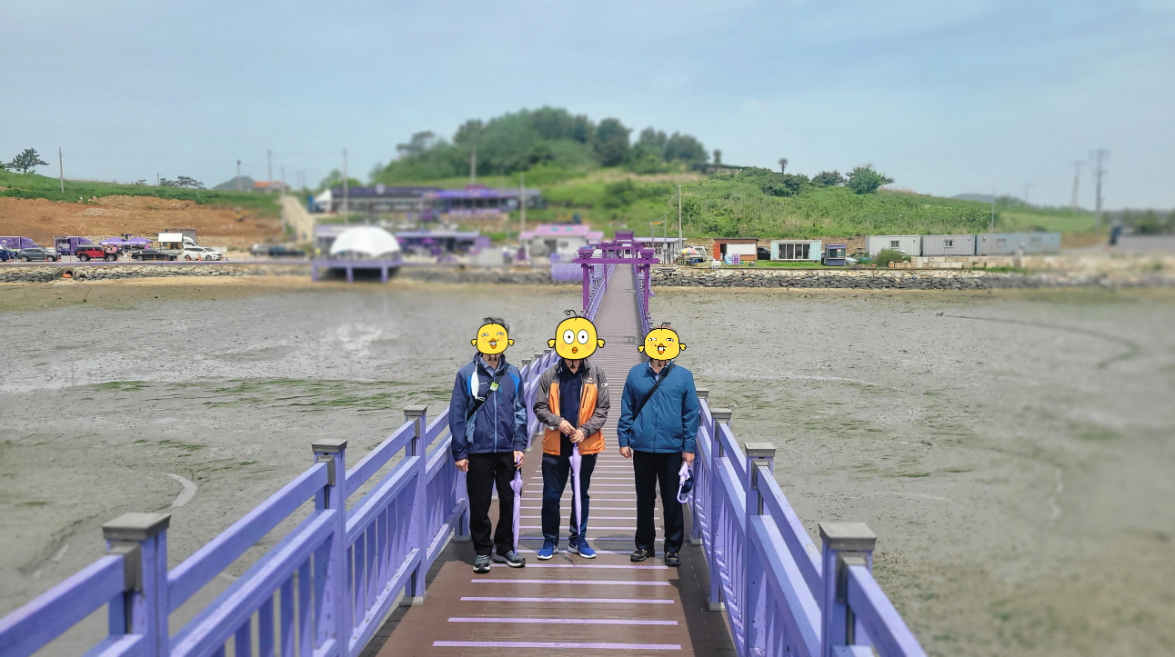 반월도를 경유해서 박지도를 돌아서 한 바퀴 퍼플다리를 갯벌 위에서 꼬물닥 거리는 망둥어와 조개들을 구경하면서 느긋하게 산책하듯이 돌다 보면 어느새 캡틴(가이드)이 얘기한 버스 타는 곳까지 도착하게 됩니다.