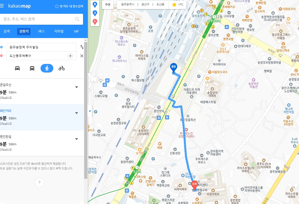 버스가 세워진 송정역 주차 빌딩에서 걸어서 10분 거리에 있는 많이 삭히지 않아서