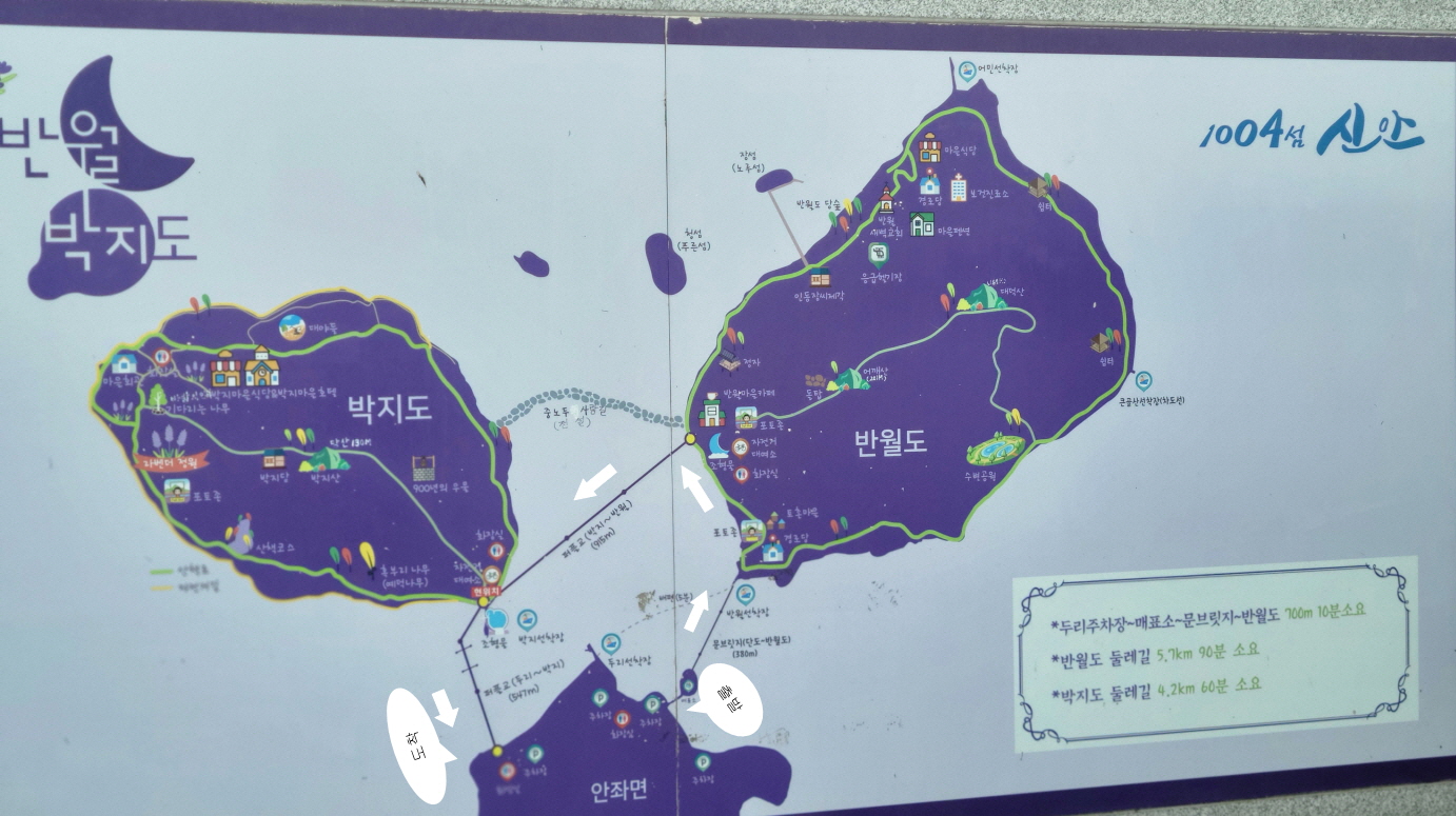 반월도를 지나 박지도까지 퍼플교 한 바퀴 도는 데 걸린 시간은 40분쯤 걸린 거 같네요.