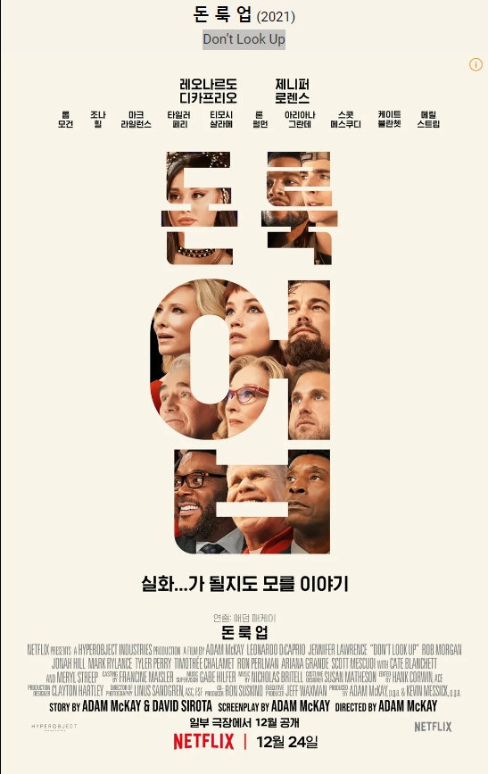 영화 돈 룩 업 실화가 될지도 모를 그날의 이야기카테고리 없음 2024. 4. 15. 04:52반응형