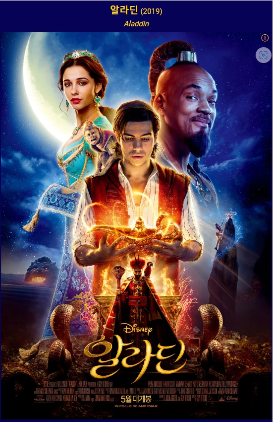 알라딘 은 디즈니의 애니메이션 클래식을 현대적으로 재해석한 작품입니다. 이 영화는 동심을 일으키며 신비한 이야기와 환상적인 모험을 담고 있으며 원작을 기반으로 한 이 작품은 기존의 매력을 살리면서도 새로운 요소들을 더해 관객들에게 새로운 경험을 선사합니다. 그리고 이영화에는 다채로운 설정과 풍부한 상상력으로 가득합니다. 아그라바의 현실적인 모습과 마법의 힘이 어우러진 모험은 관객들을 신비롭고 흥미진진한 여정으로 안내합니다. 또한 알라딘과 재스민의 모험은 연인들에게 함께하는 즐거움을 선사하며, 황금으로 빛나는 아그라바의 거리, 푸른 하늘 아래 펼쳐지는 사막의 풍경, 그리고 마법의 능력을 가진 지니가 펼치는 특별한 모험은 관객들의 상상력을 자극한다. 연인들은 영화를 보며 이런 다채로운 세계에 빠져들어 함께한 여행을 즐길 수 있을 것입니다.